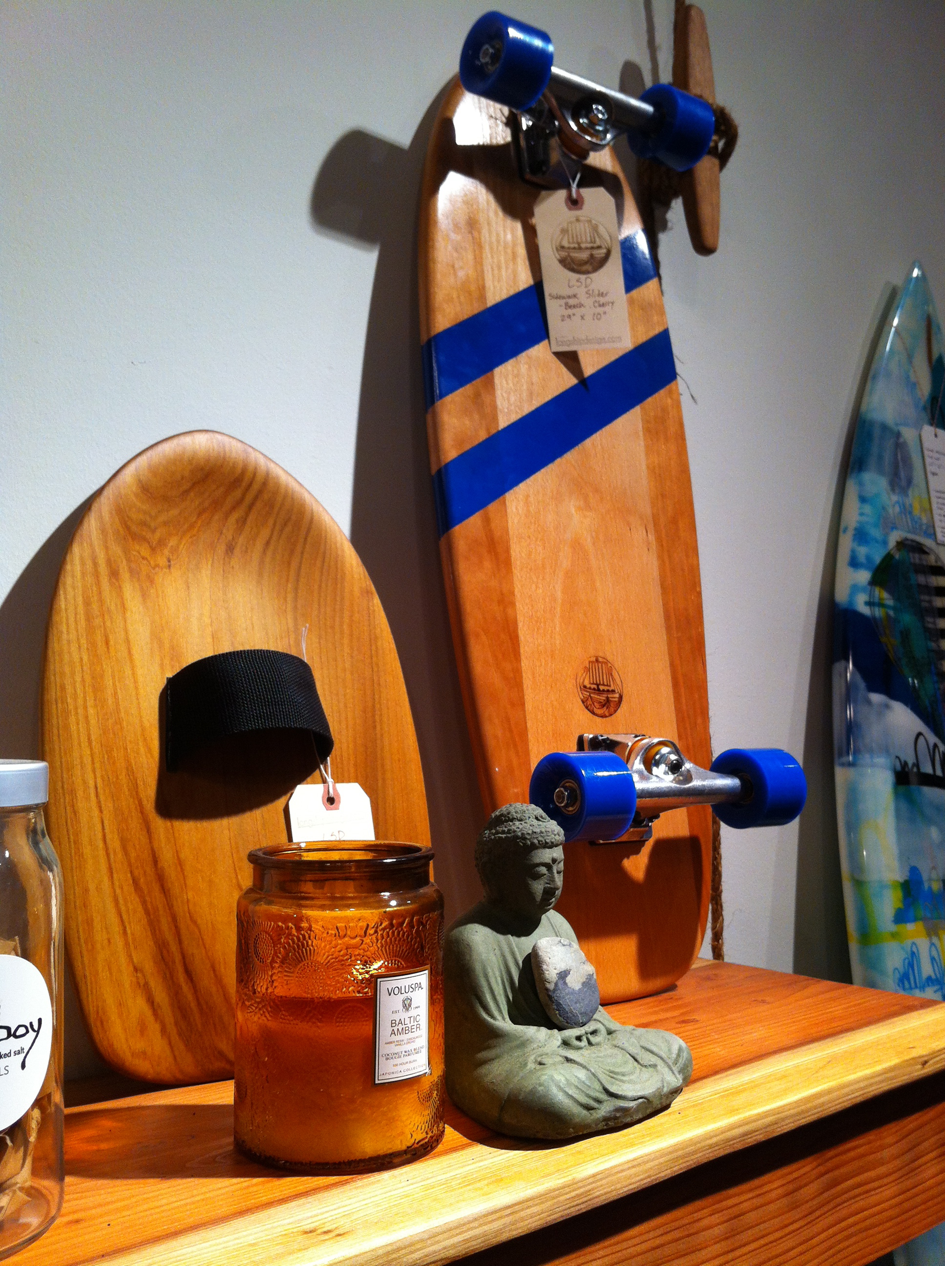 A handplane and skateboard in the excellent new shop in Santa Cruz, Sawyer Land & Sea Supply. Make sure to check them out if you are in the area!